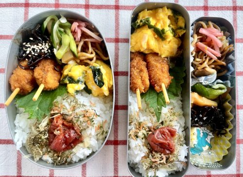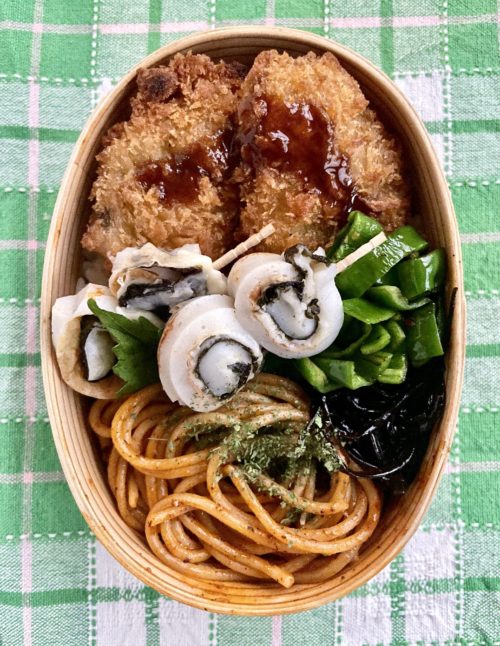 茎わかめ入り玉子焼きと焼きそば入り…w