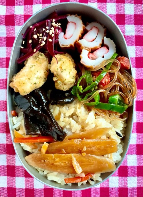 おかずがなくてちくわボート&冷凍唐揚げを詰めた朝…
